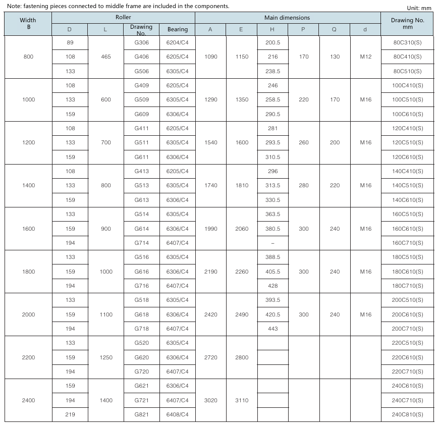Requirement for drum surface: all are cast rubber surface. Drawing No. with “Y” as postfix refers to right-direction herringbone, with “Z” as postfix refers to left-direction herringbone, with “YZ” as postfix refers to diamond shape (omissible).